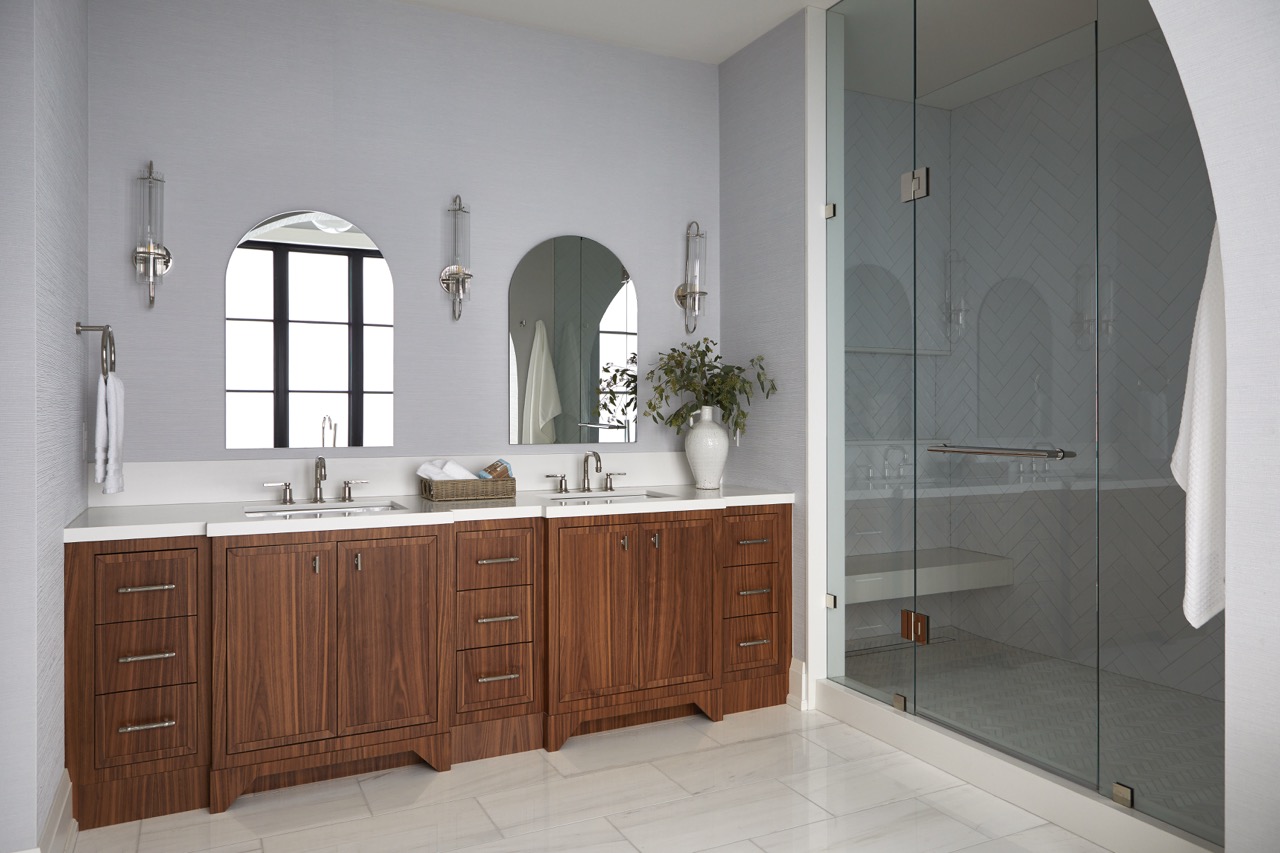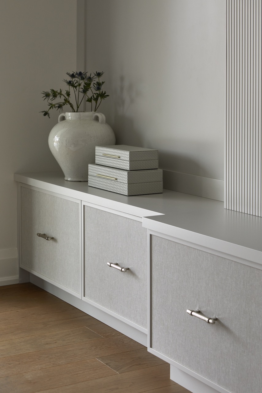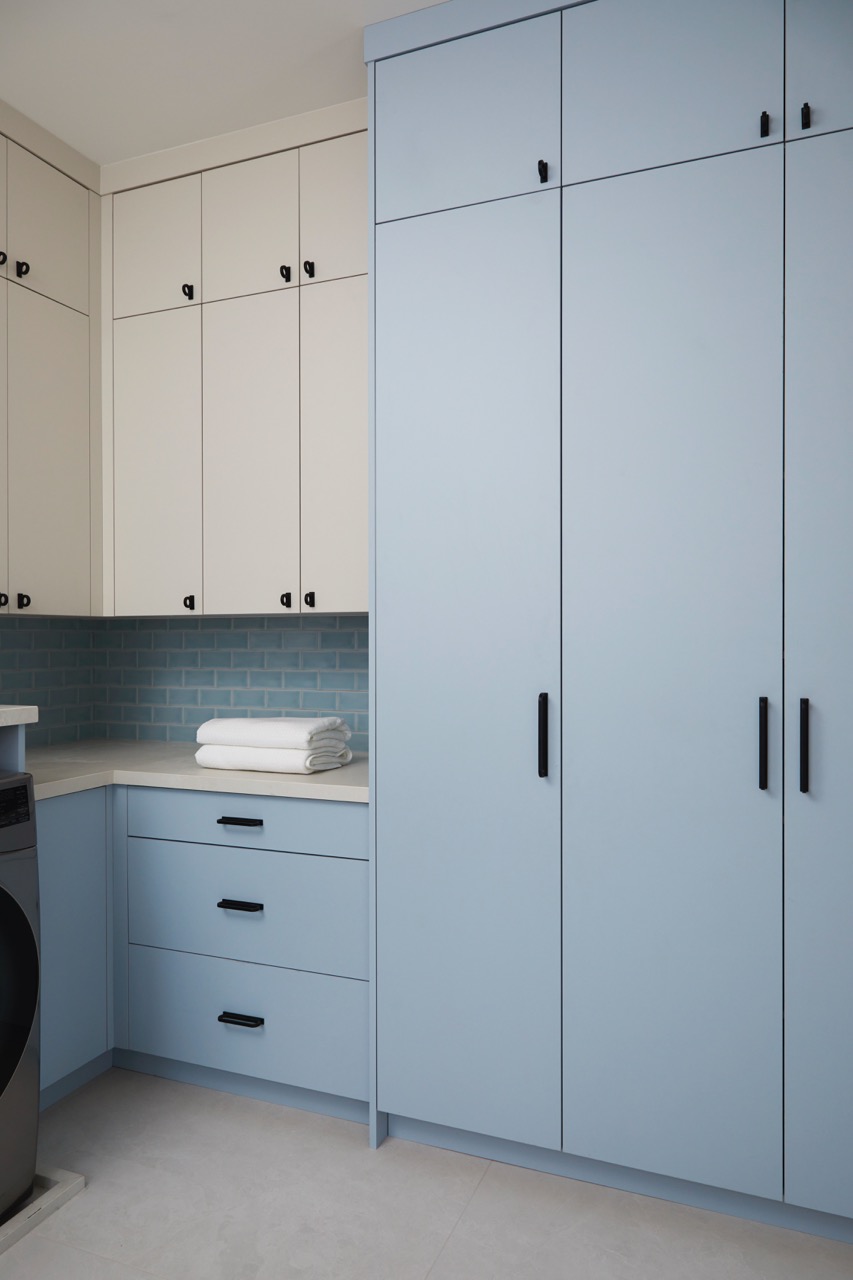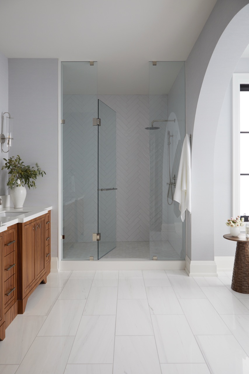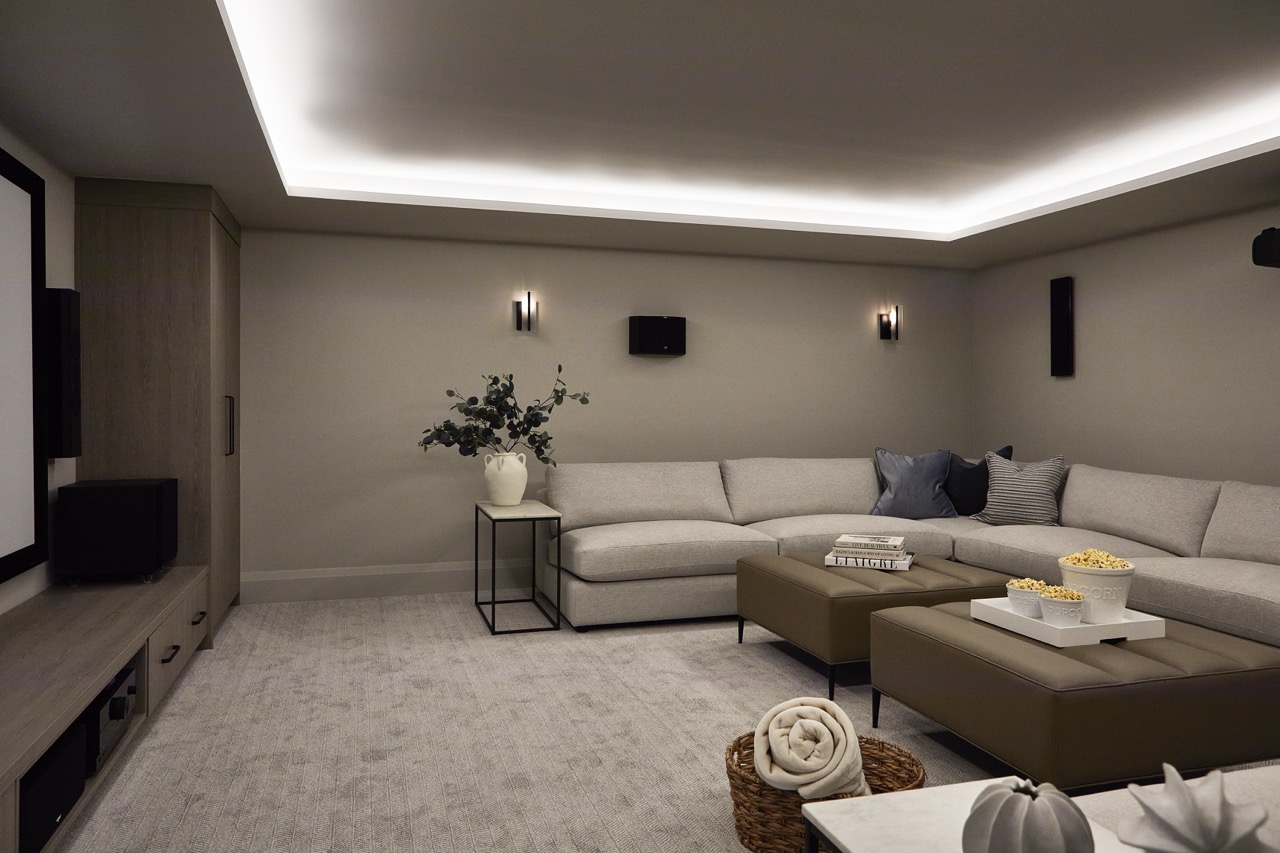 Project Cedervale blends contemporary and transitional design with bold, thoughtful details. A deep blue runs throughout the home, seen in custom millwork and carefully selected furnishings, adding richness and character. In the dining room, wallpapered panels bring depth and softness, while beautiful natural stone tiles were custom designed to accent key spaces. The result is a refined, cohesive interior that feels timeless, layered, and distinctly personal.