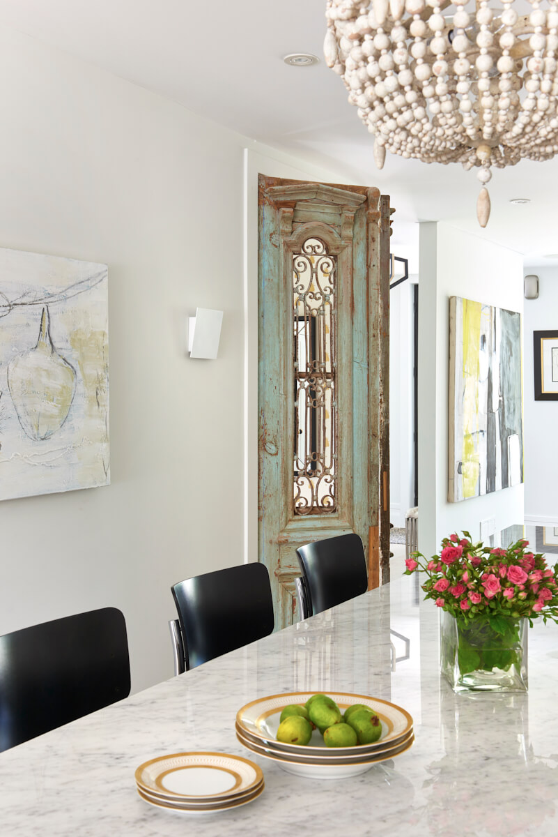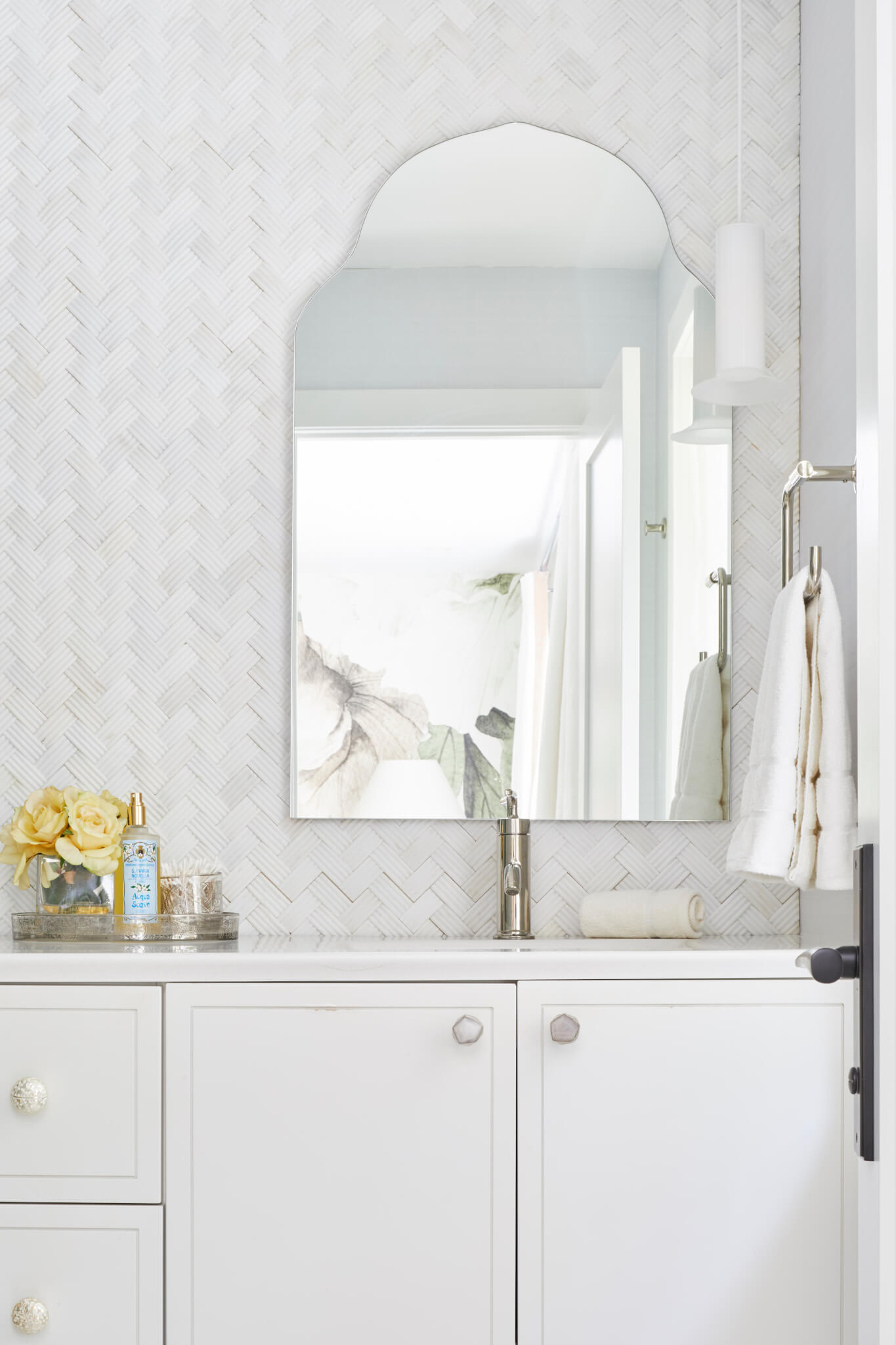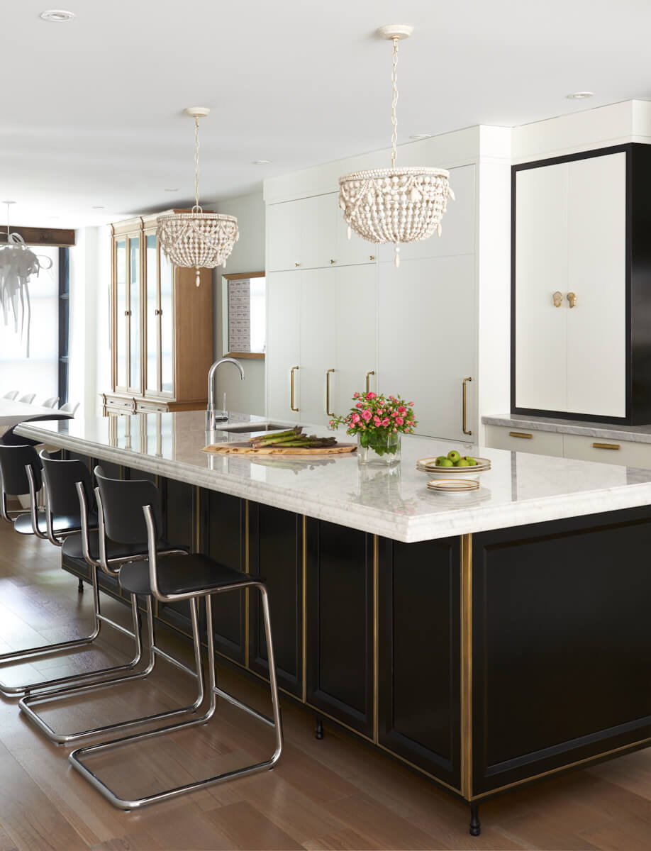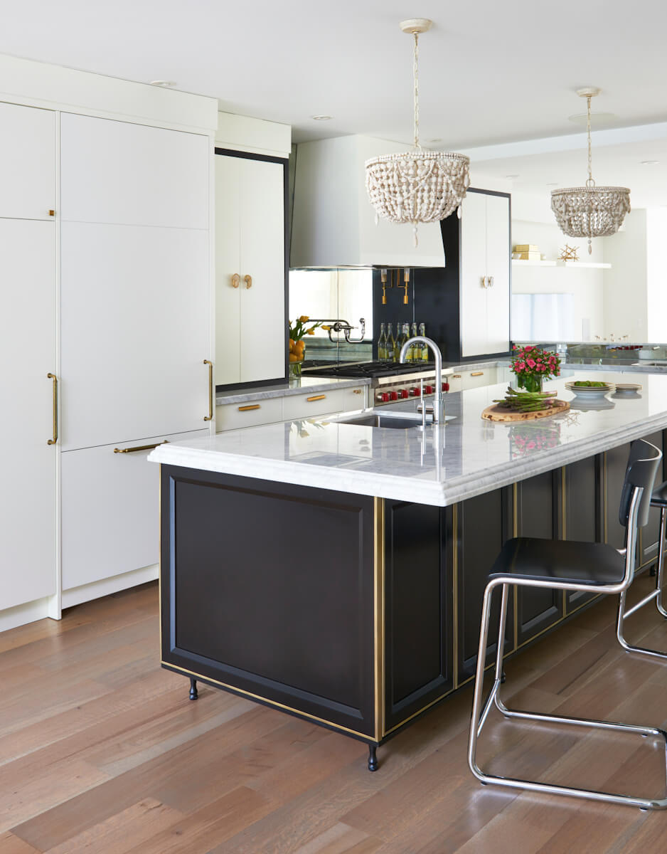 This modern eclectic home in the heart of the city underwent a full transformation, including an 800 sq ft two-story addition that expanded it to 2,800 sq ft. Gutted to the brick, it was reimagined with a practical, family-focused layout featuring a centrally located kitchen that merges multiple design styles with both function and flair. The kitchen, free of typical upper cabinets, showcases full- height pantries, sleek white slab doors, and a dramatic black island trimmed in brass. Cleverly concealed appliances, antique mirror backsplash, vintage Egyptian doors, and layered lighting pendants, sconces, and downlights, all add to its glamour. The adjacent open-concept dining and living spaces balance rustic and modern elements, while the master suite, carved from the addition, is a compact yet luxurious retreat with a double vanity, marble-clad shower featuring a floating seat, and stylish pendant lighting. Each bedroom reflects its user’s style, with the master embracing a fresh, glamorous aesthetic that echoes the home’s blend of modern and eclectic design.