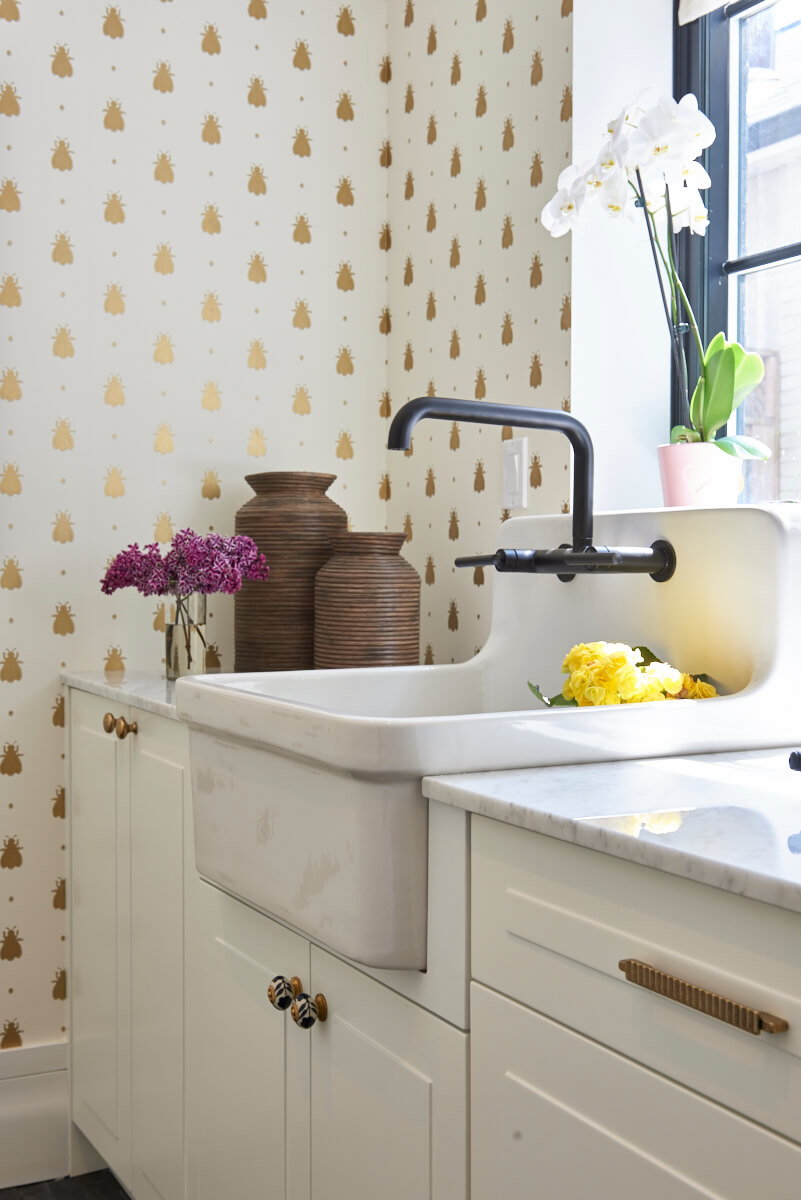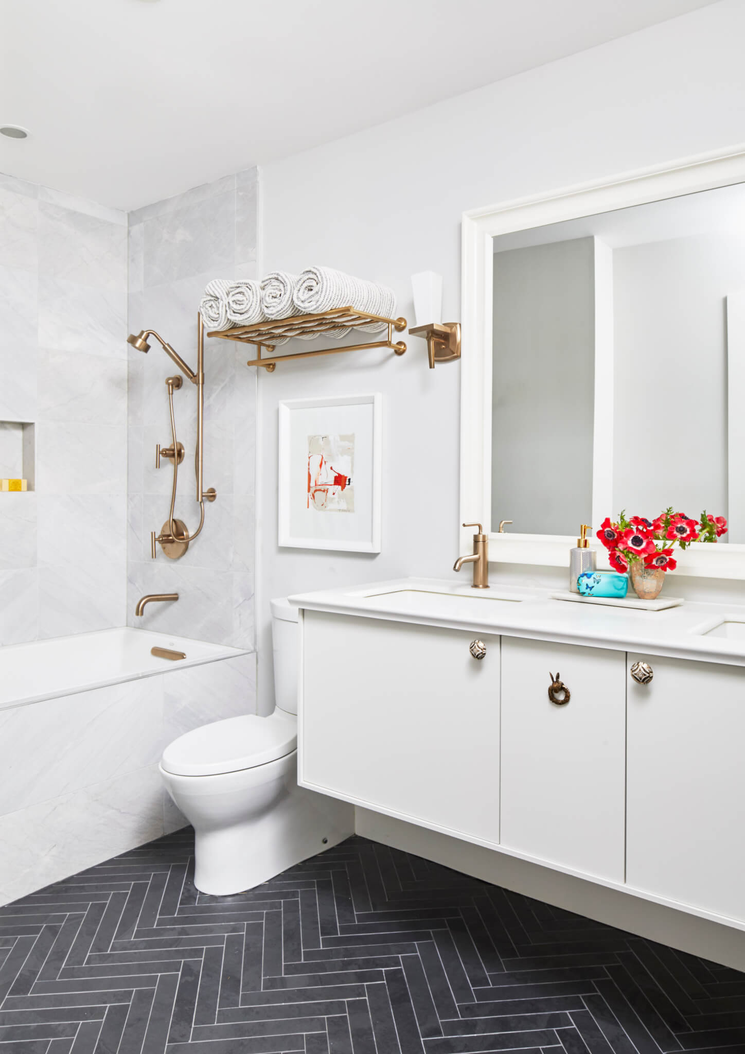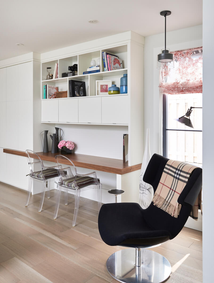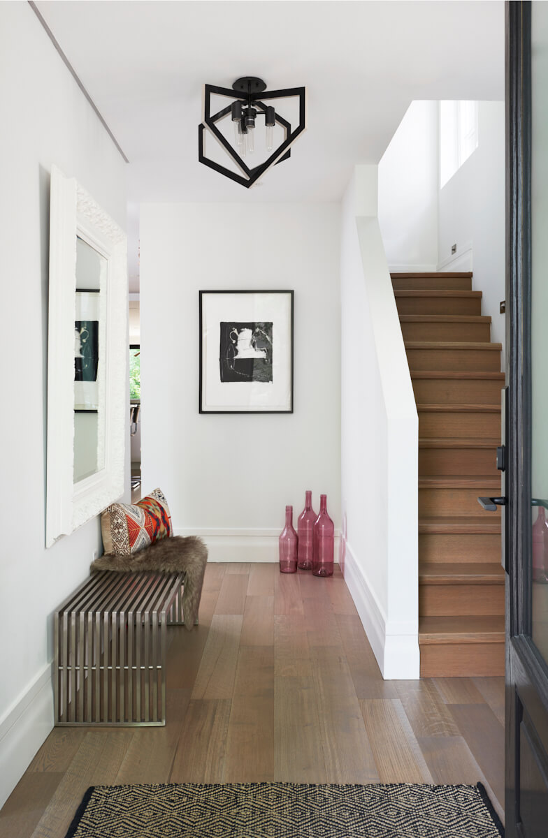 This modern eclectic home in the heart of the city underwent a full transformation, including an 800 sq ft two-story addition that expanded it to 2,800 sq ft. Gutted to the brick, it was reimagined with a practical, family-focused layout featuring a centrally located kitchen that merges multiple design styles with both function and flair. The kitchen, free of typical upper cabinets, showcases full- height pantries, sleek white slab doors, and a dramatic black island trimmed in brass. Cleverly concealed appliances, antique mirror backsplash, vintage Egyptian doors, and layered lighting pendants, sconces, and downlights, all add to its glamour. The adjacent open-concept dining and living spaces balance rustic and modern elements, while the master suite, carved from the addition, is a compact yet luxurious retreat with a double vanity, marble-clad shower featuring a floating seat, and stylish pendant lighting. Each bedroom reflects its user’s style, with the master embracing a fresh, glamorous aesthetic that echoes the home’s blend of modern and eclectic design.
